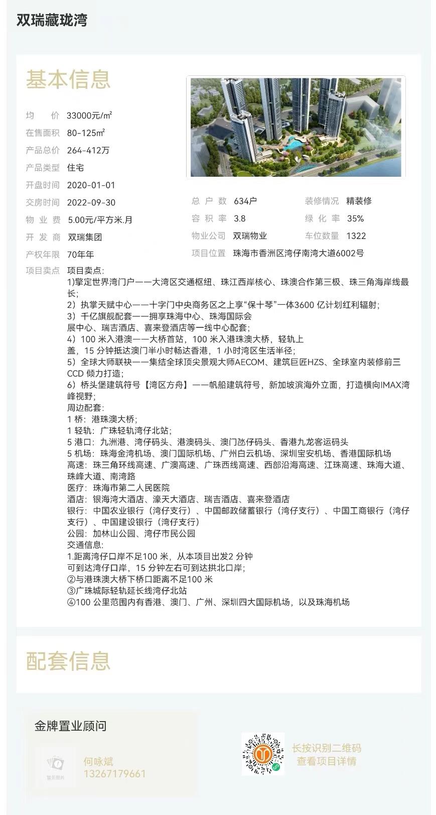 2)執(zhí)掌天賦中心——十字門中央商務區(qū)之上享“保十琴”一體3600 億計劃紅利輻射; 3)千億旗艦配套——擁享珠海中心、珠海國際會展中心、瑞吉酒店、喜來登酒店等一線中心配套; 4)100 米入港澳——大橋首站,100 米入港珠澳大橋,輕軌上蓋,15 分鐘抵達澳門半小時暢達香港,1 小時灣區(qū)生活半徑; 5)全球大師聯(lián)袂——集結全球頂尖景觀大師AECOM、建筑巨匠HZS、全球室內(nèi)裝修前三CCD 傾力打造;