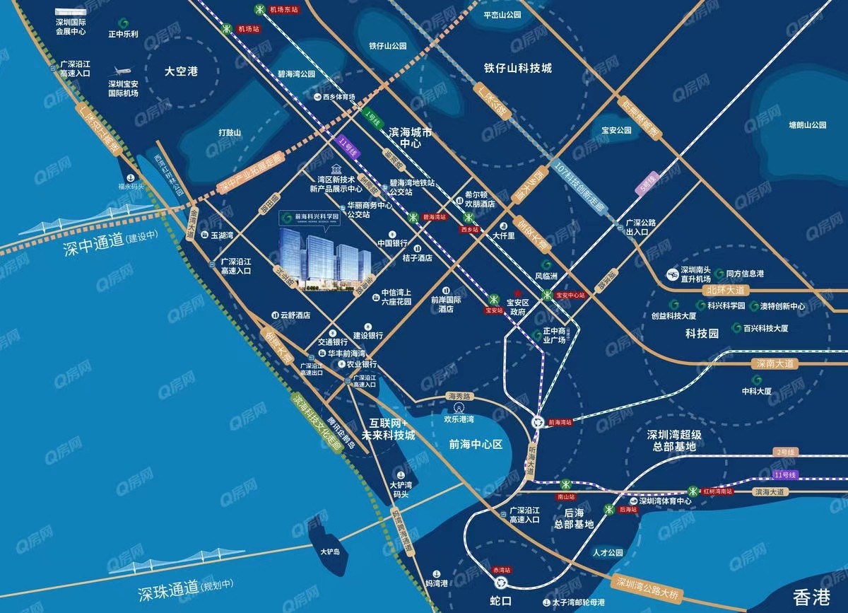 地鐵口物業,領銜世界科創速度。軌道:距地鐵11號線碧海灣站A出口僅約400米;公交:自帶公交總站,20余條公交線路;自駕:4條主干道+1條高速,臨近沿江高速路口,30分鐘抵達深圳各區,60分鐘通達粵港澳城市群。