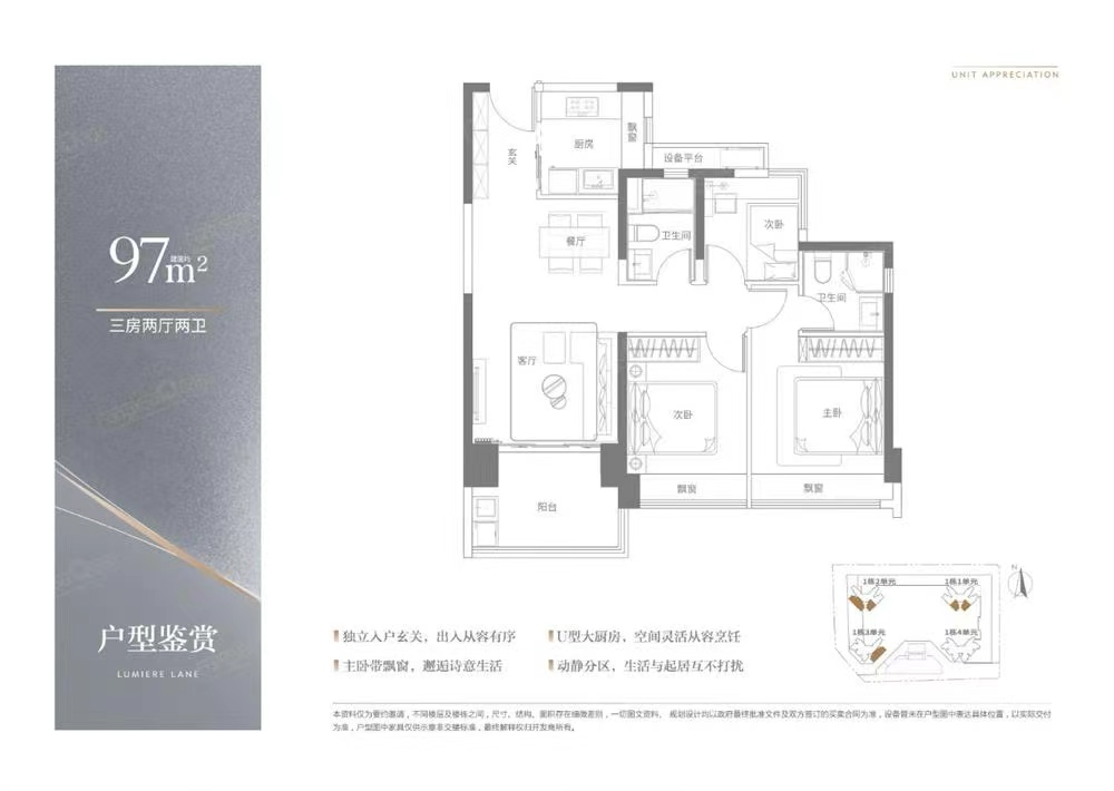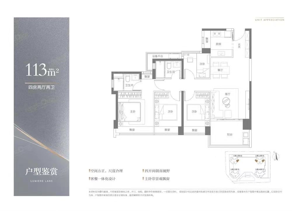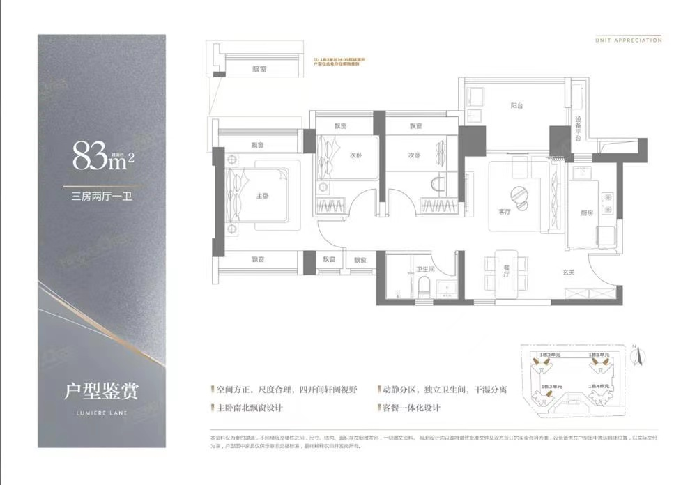 產品:建面約83-1133-4房品智美學住宅,多面寬朝陽,攬清風入懷;